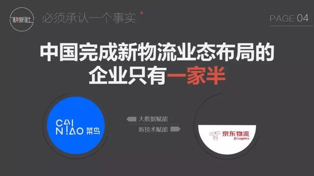 新物流是數(shù)據(jù)基礎(chǔ)設(shè)施的社會(huì)化共享以及智能物流技術(shù)的全面普及。目前中國完成新物流業(yè)態(tài)布局的企業(yè)只有一家半,一家是菜鳥,那半家是京東物流。 ..